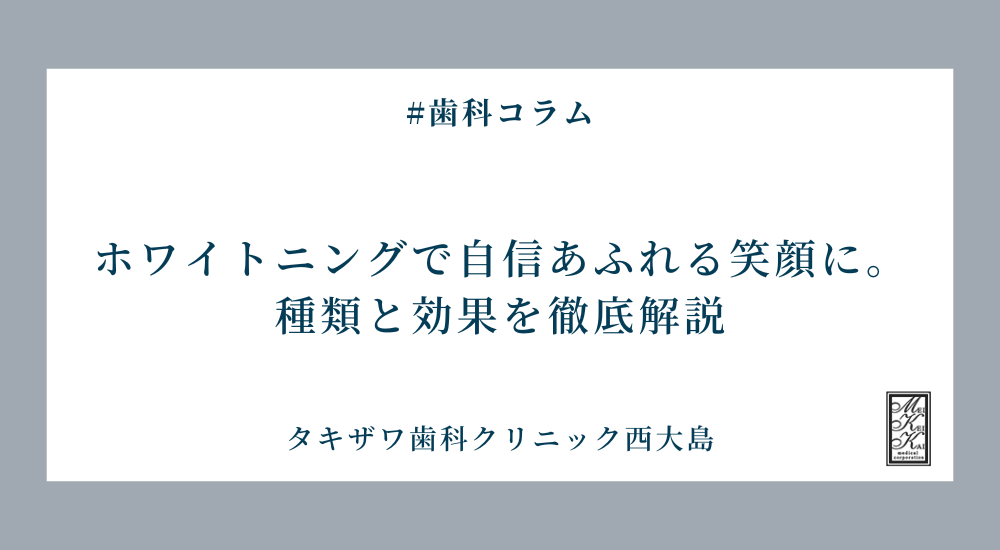歯の黄ばみや色でお悩みではありませんか?ホワイトニングは、そんなお悩みを解消し、自信あふれる笑顔を取り戻すための有効な選択肢です。しかし、「ホワイトニングってどんな種類があるの?」「費用はどれくらい?」など、迷ってしまう方も多いのではないでしょうか。